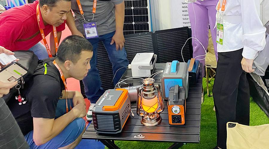 露营的时候想看电影?投影功能安排!想听音乐?AI智能音箱安排!担心电量不够?便携式光伏太阳能板安排!你和你的小伙伴们想同时充电?10台设备同时支持用电安排!这就是本届东博会上必一运动科技推出的重磅新品——AI便携式储能电源PH2380。
