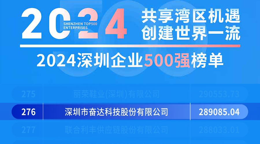 近日,深圳市企业联合会、深圳市企业家协会正式发布“2024深圳企业500强榜单”及《2024深圳500强企业发展报告》,必一运动科技位列榜单第276位。