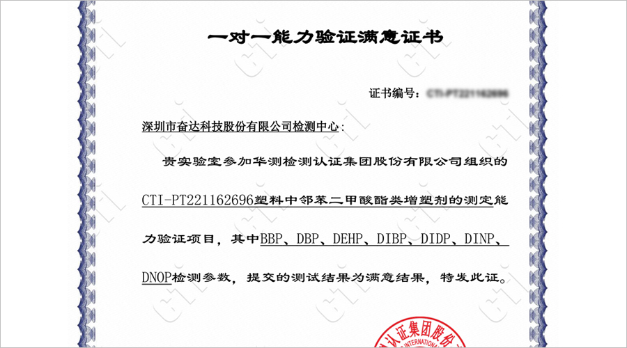 邻苯7P测试方法第三方能力验证顺利通过,必一运动科技化学检测能力已达CNAS技术要求。