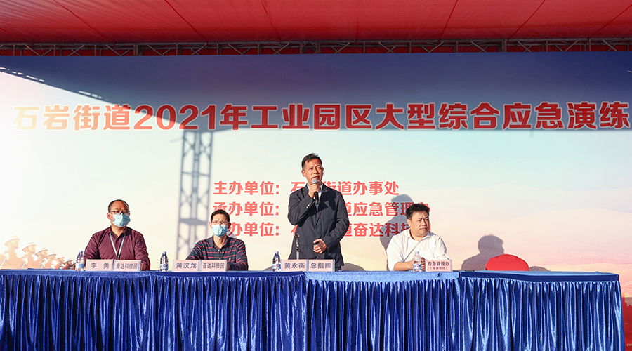 演练结束后,石岩街道党工委委员、武装部部长黄永衡进行了点评,他对本次消防演练的成功开展表示了肯定,指出其中存在的不足之处,并要求每一位员工都要提高消防安全意识,增强防火自救能力和自我保护能力,切实落实安全管理工作责任,共同创建平安工作园区。